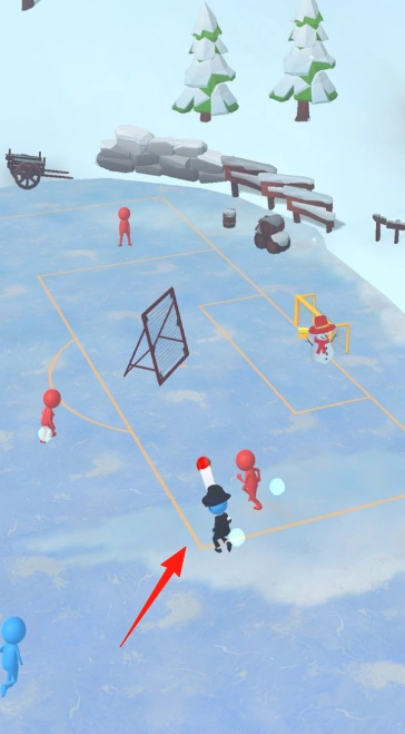 游戏设有雪地、沙滩、城市球场等场景模式,分别对应不同环境下的足球赛事。玩家将操控蓝色火柴人队伍,与红色队伍展开对抗。