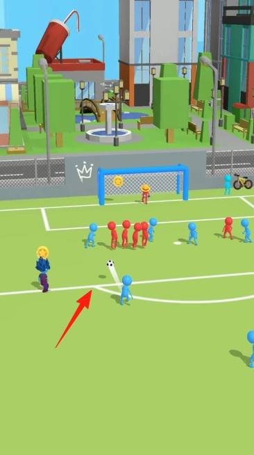 指尖轻触即可开启解压体验:操作仅需滑动与点击,无需复杂战术,核心是“瞎踢也能赢”的轻松感——新手随意点击也能触发趣味进球,高手则可探索“借助场地反弹踢球”的技巧,甚至利用对手身体作为跳板。