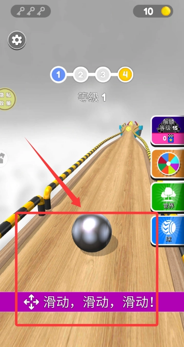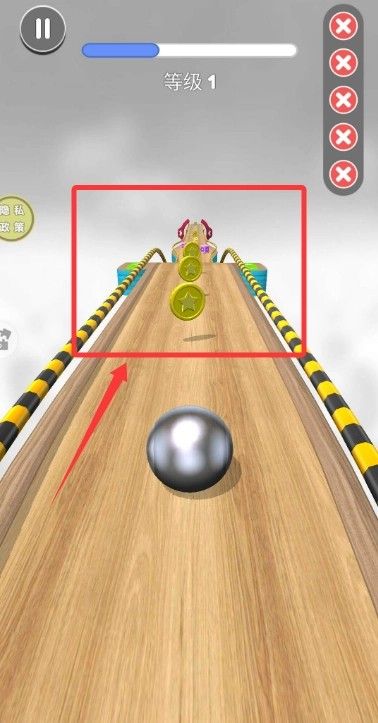 游戏启动后,通过滑动操作来控制球球移动,在布满障碍的立体赛道上开启一段冒险之旅。