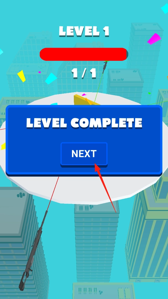 成功击败敌人后,界面会出现LEVEL COMPLETE的提示,点击NEXT按钮即可进入下一关。通过这样的操作,能够逐步推进关卡进度,解锁全新的挑战内容,同时体验关卡之间衔接的游戏玩法。