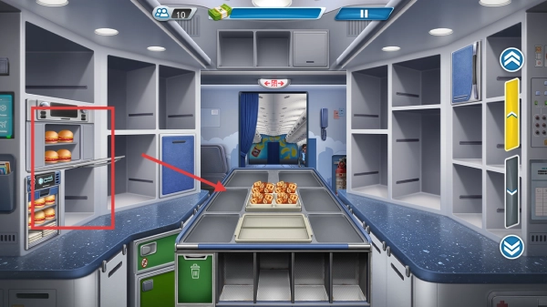 主界面点“进入游戏”,开启机舱烹饪服务关卡。
