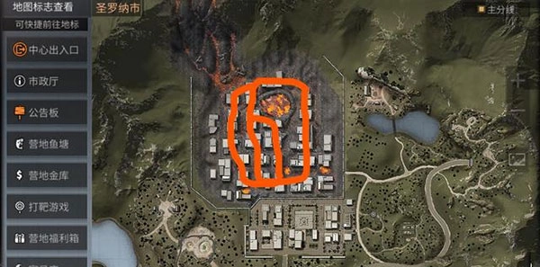 这张地图里最难寻觅的箱子,随机刷新的范围相当宽泛,十分考验耐心。它会出现在地图中央被岩浆吞噬的城市区域的屋顶之上,至于具体是哪些房屋的房顶,我已经为大家标注清楚了,具体信息请参考下面的图片。