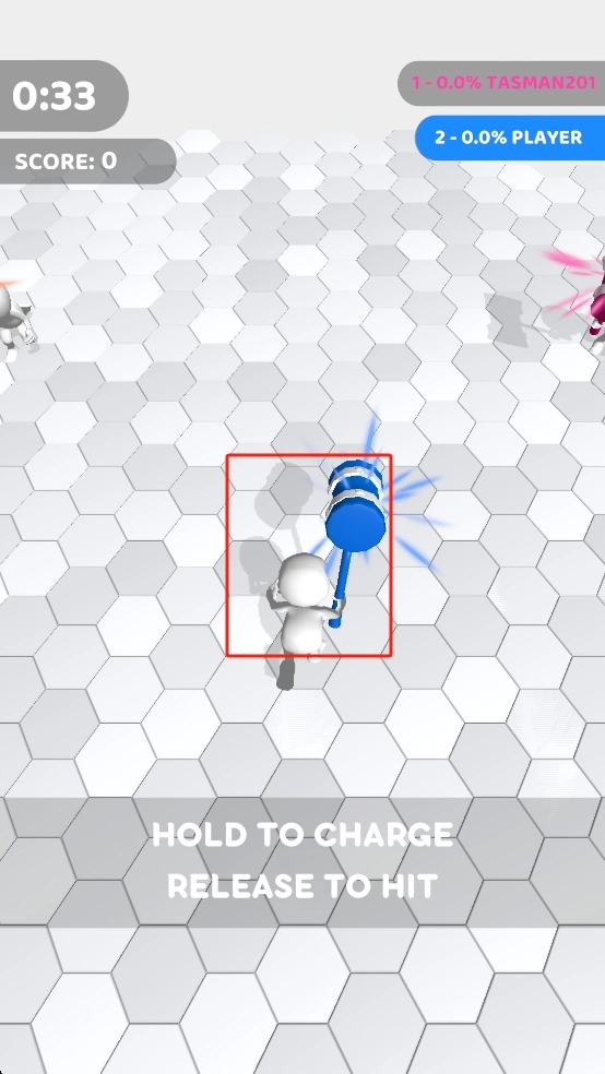 找到那个举着锤子的角色,按住它进行蓄力操作,看准合适的时机松开,利用锤子的攻击效果把对方打飞出去,这样就能进入竞技对抗模式,同时为自己积累最开始的分数。