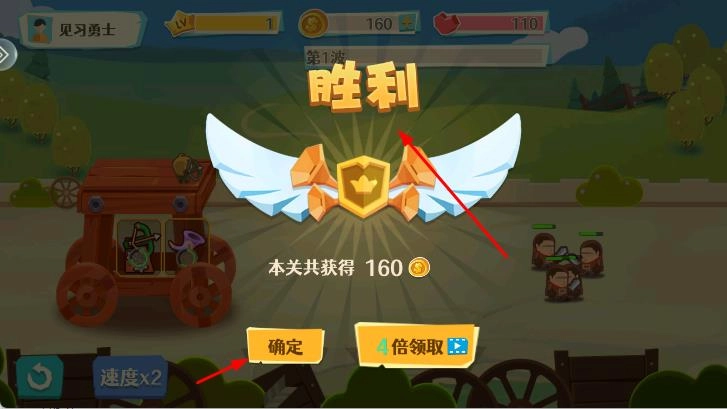 成功抵挡第一波敌人的进攻,顺利取得胜利!现在结算金币奖励,点击“确定”按钮即可进入下一关,继续迎接更多波次敌人的挑战,还能解锁全新关卡与实用道具。