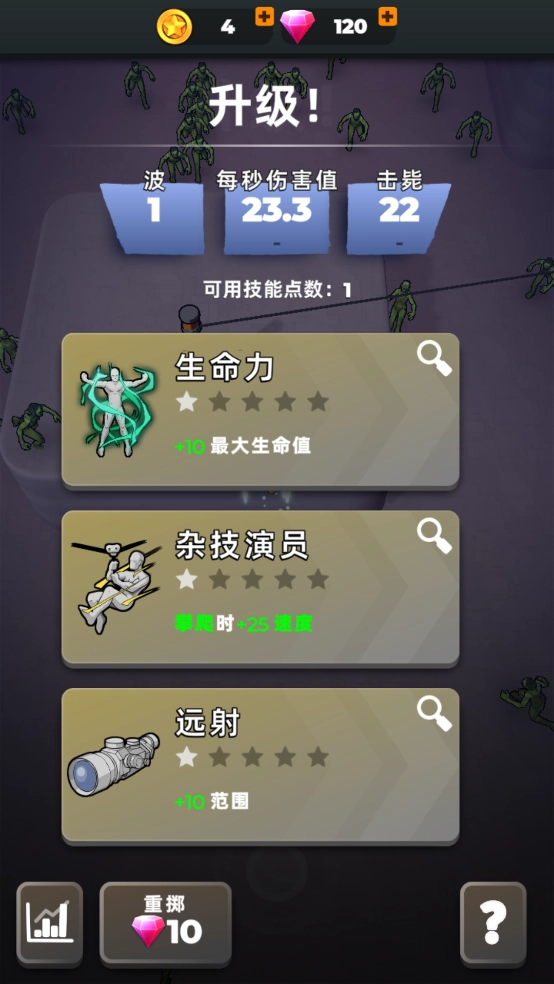 武器会自动开火。拖动即可移动并躲过每一波攻击。