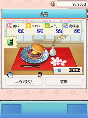 这是一款非常有趣的经营类游戏,玩家可以和哆啦A梦一起经营店铺。游戏中可以对店铺场景进行装修升级,比如摆放餐桌、更换地板颜色等,亲手打造一家精致的铜锣烧店。此外,玩家还能在游戏里自由设计和制作铜锣烧,根据选择的不同配料,制作出风味各异的铜锣烧,以此来满足不同口味偏好的顾客。