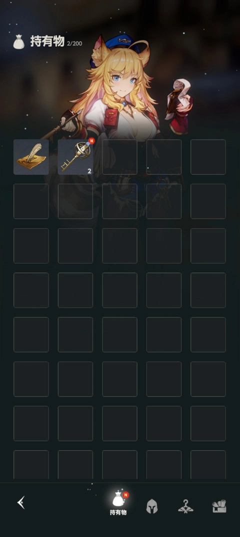 点击界面右下角的背包图标,就能浏览自己拥有的各类道具,还有武器和装备。