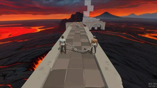 2、游戏中玩家可以和你的朋友一起游玩,你们之间会有一个铁链连着你们,一荣俱荣,一损俱损,一起向上攀爬;