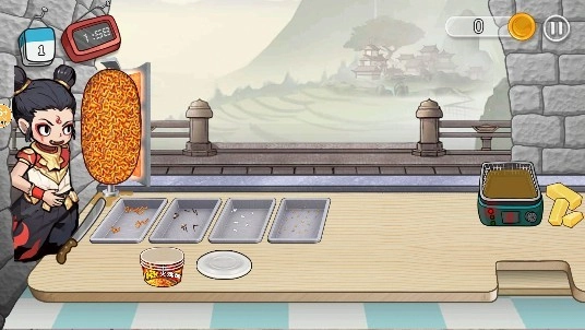 超级火鸡面是一款趣味十足的模拟经营游戏,玩家在游戏里能化身为哪吒,拥有一家专属店铺,这里主打售卖香喷喷的火鸡面,你可以通过为顾客送上美食来赚取收入,每天都得达成指定的营业额才能成功通关,赶紧来试试挑战吧!