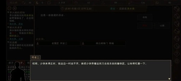 游戏里设置了丰富多样的随机任务,像官府悬赏令、江湖传闻这类都包含在内。