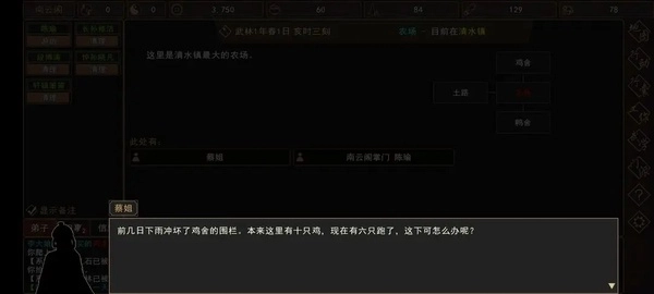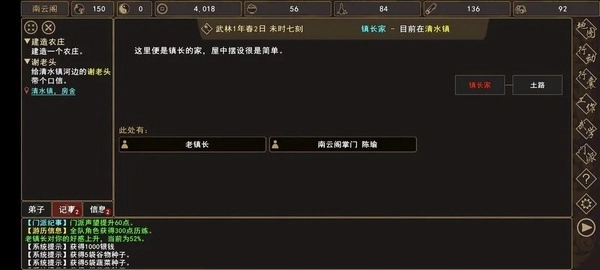 扬州城外那条通往清水镇的泥土路上,会自动触发一段剧情动画。击败名叫铁牛的汉子和他身边两个跟班后,返回清水镇镇长的居所,与那位年长的镇长交谈,就能开启“建造农庄”的任务,同时解锁“强盗突袭门派”的随机事件。另外,若愿意帮谢姓老者捎个口信,还能接取与他相关的新任务。
