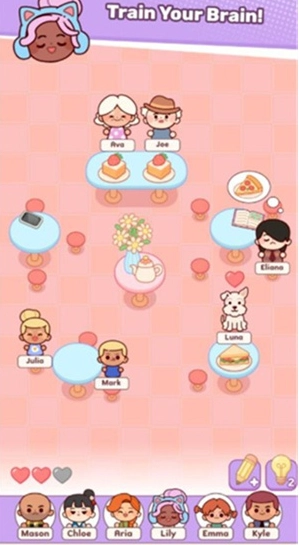 在游戏关卡中,需依据底部给出的指引,把各类角色安置到相应的座位上。