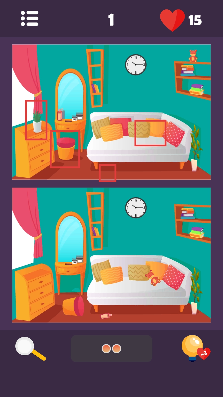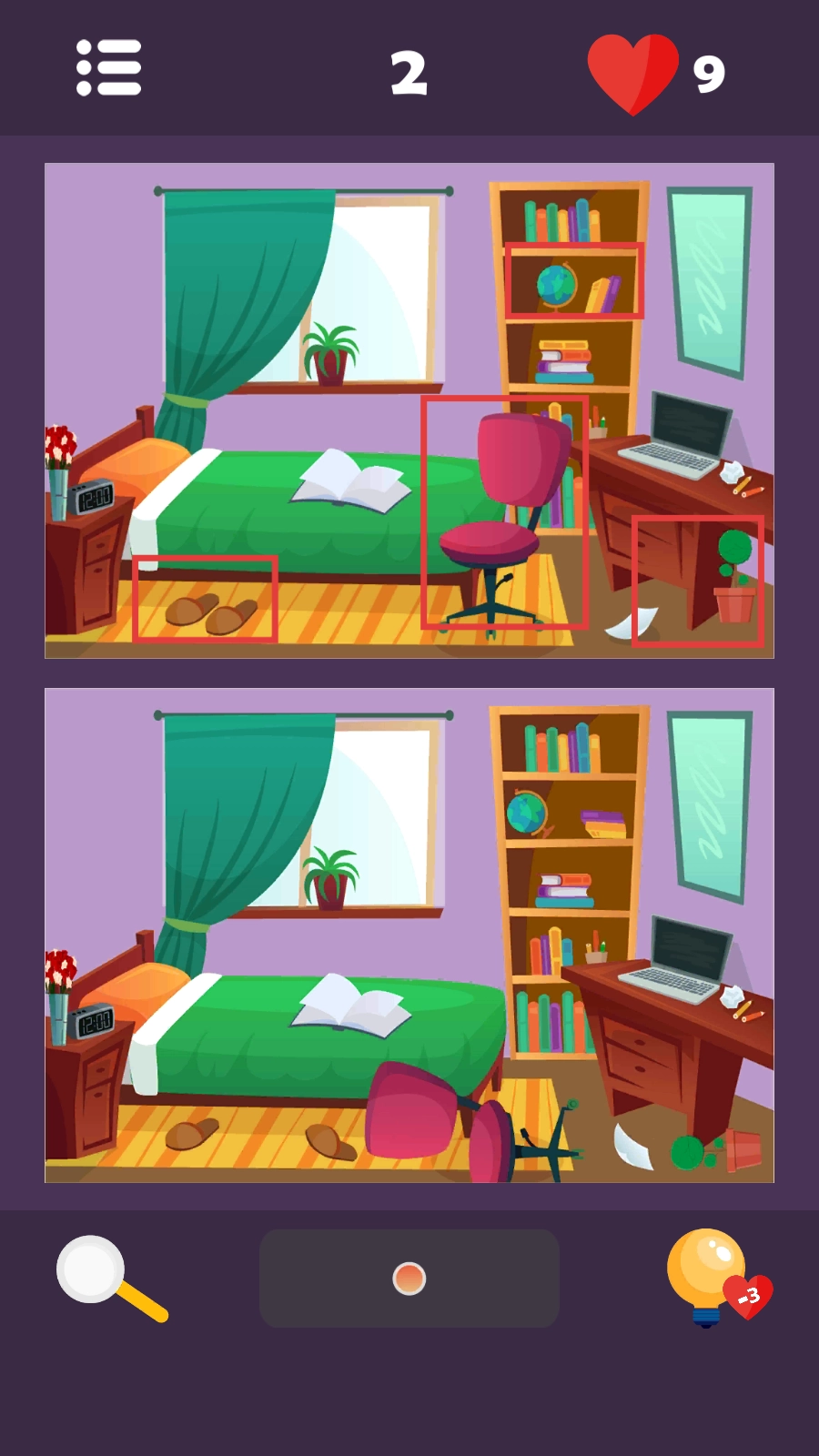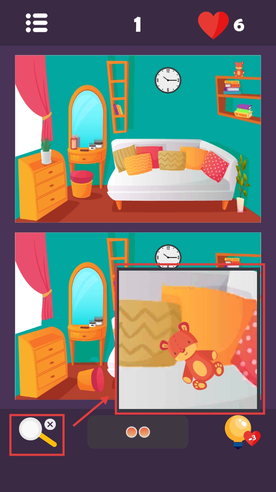 当在关卡里碰到难以察觉的差异时,可点击界面左下角的放大镜图标,通过放大画面来更轻松地识别出不同的地方。