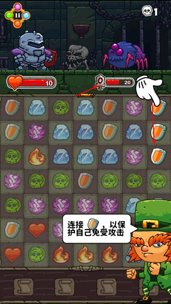 战斗时,把盾牌图案连接起来,利用它的效果来保护自己不被敌人攻击,从而提高生存能力。