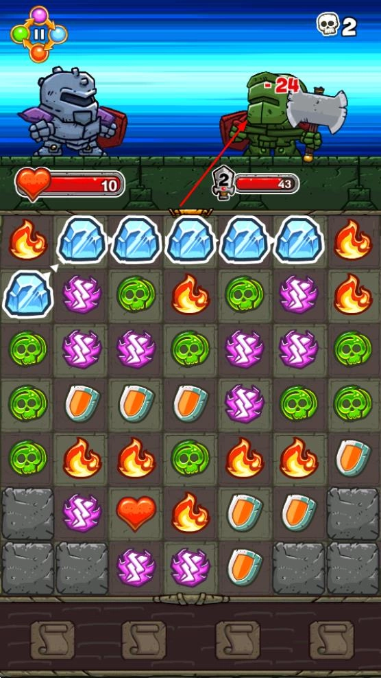 消除时尽量让更多相同图案连成链子,这样能提升攻击或防御的效果,从而更接近击败敌人的目标。