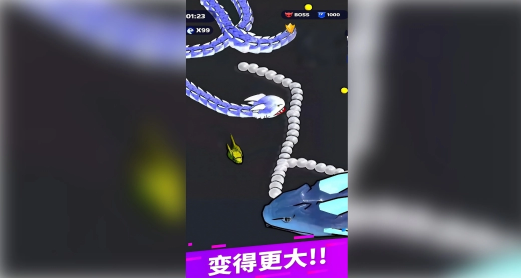 操控蜿蜒生物的行进轨迹,吞食场景内的补给物以延展身躯,同时规避边界、阻碍物与对手的袭扰。