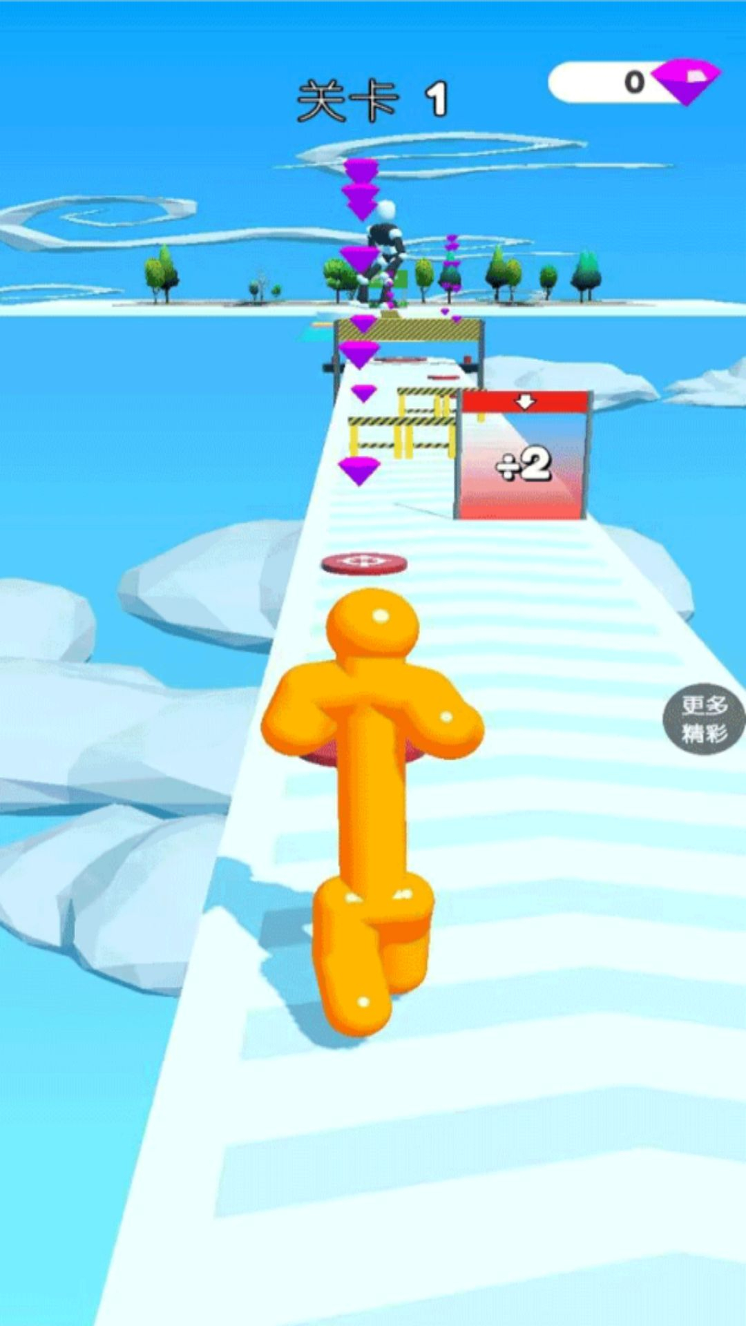 2、突破重重障碍,在不同关卡间穿梭前行,跑酷途中还能变换果冻人的外观,感受别具一格的成长趣味。