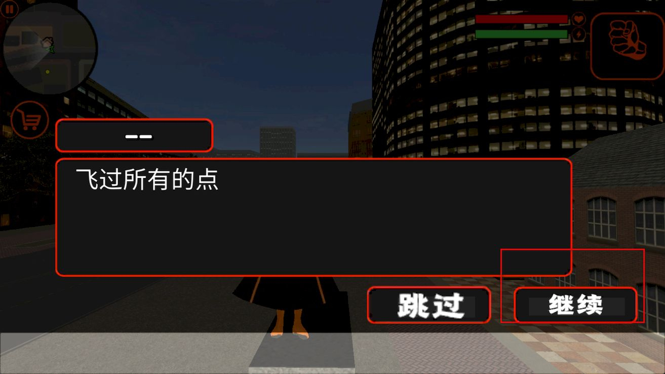 2、当遇到“飞过所有的点”这类任务提示时,你可以选择点击继续按钮来开启任务,也可以点击跳过按钮直接略过,具体选择可根据自己的想法决定。