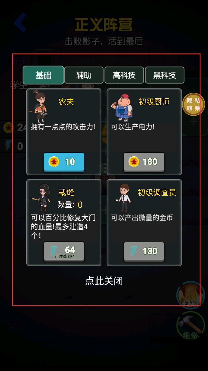 4、英雄角色体系:通过收集具备独特技能的幸存者角色,利用每位英雄所提供的各异属性加成与专属技能,构建起优势互补的防御阵容。
