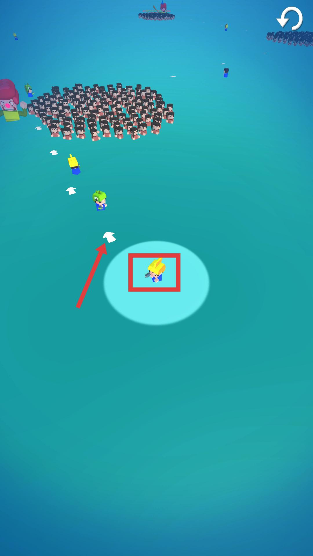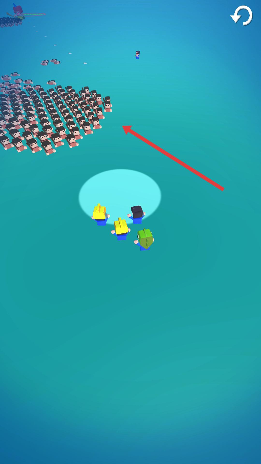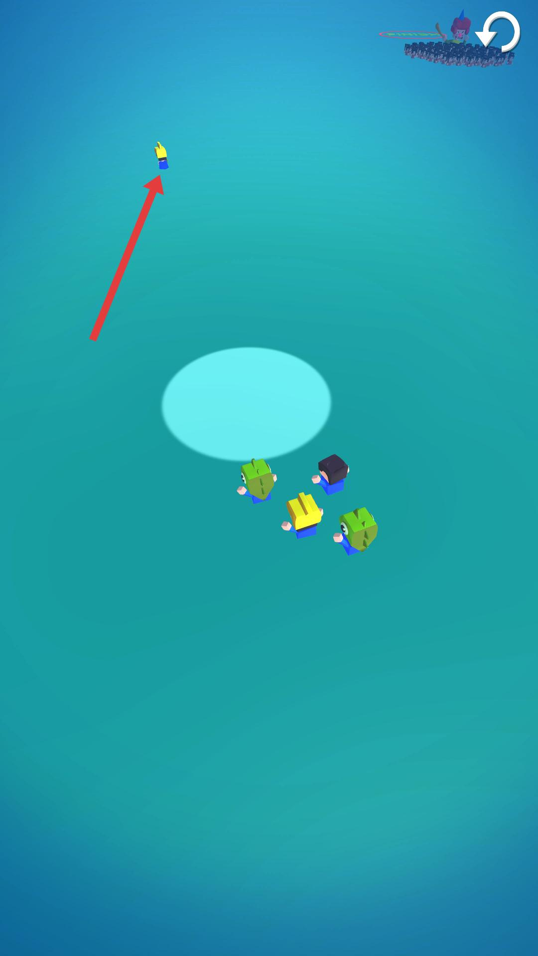 2、继续操控黄头盔角色跟随箭头指示前行,行进过程中与其他颜色的角色会合,以此壮大我方队伍规模,同时要留意远处的敌方势力,提前规划好移动路线。