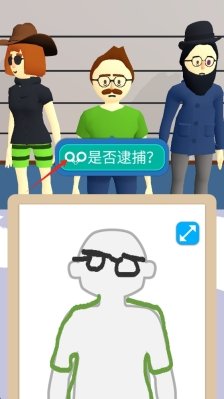 3、在识别嫌疑人的环节,通过与画像进行比对来判断是否实施逮捕,以此完成关卡挑战,随后点击按钮对目标执行逮捕操作。