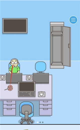 2在第20个关卡中,先切换到第二页场景,移开覆盖物拿到钥匙,解锁并推开第一扇门。进入后会遇到另一扇门,连续两次操作打开它继续前进,直到界面出现三页标识。此时转向左侧的储物柜,打开柜门取出相机,再打开前方的门进入新区域。这里有两扇门可供选择,选右侧那扇打开并进入,用相机拍摄里面的一对男女,最后开门完成逃脱。