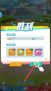 4、战斗胜利后会弹出胜利界面,呈现获得的金币、冒险道具、宠物相关奖励等,点击确定按钮就能领取这些奖励,奖励可用于宠物培养、升级等用途。