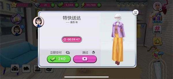 4、大家都清楚,完成订单后要是客户说“真时髦,我好喜欢”,就意味着这次的搭配很成功,客户对你表示了认可,相应地游戏发放的绿色钞票也会比较多。这时候得特别留意,毕竟一天内奖励翻倍的机会是有次数限制的。所以要抓住这个时机提交订单并选择翻倍领取奖励,这样就能获得更多钞票了。