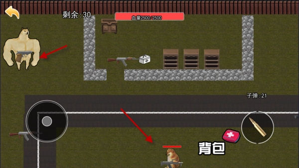 进入游戏后,你会出现在左上角,刚开始只有一把小手枪。