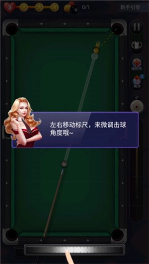 游戏界面的下方设有一个标尺,可通过左右拖动来调整击球的角度。