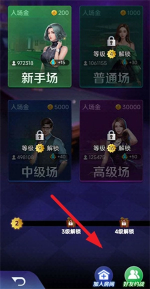 右下角设有两个功能选项,其一为加入房间,其二是好友约战,您可根据需求选择合适的一项。