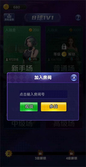 直接点击左下角的“加入房间”功能,接着输入房间号,既可以观战,也能参与对战,具体选择由你决定。