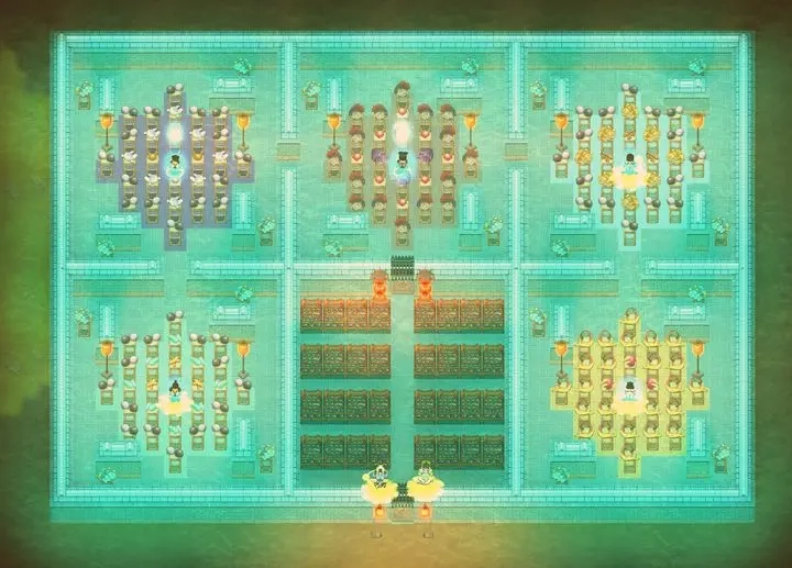 第六天起,开始进行房屋建造、农田开垦以及矿石开采(矿石开采由专人负责,同时提升小人的挖矿效率)