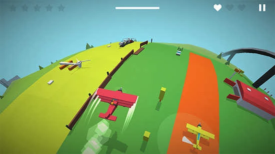 在《天空决斗》的最新版本里,玩家将置身于多边形建模风格的世界,驾驶飞机自由翱翔天际,与敌方战机展开紧张刺激的空中对决。玩家需要竭力躲避攻击,同时精准击落敌机。每成功击落一架敌机,就能获取一颗星星,星星数量越多,意味着玩家的表现评价越出色。