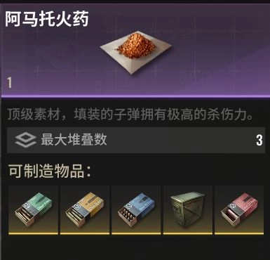 想要提升战力,除了配备趁手的武器和具备过人的技术,火力充足的子弹同样是不可忽视的关键要素。在制造子弹的过程中,阿马托火药是必不可少的。有了它,各类型号的金弹填满弹匣就不再是遥不可及的梦想了。