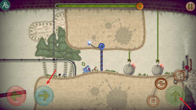 4、接下来就可以逐个跳过障碍了,通过切换按钮来切换两个角色。