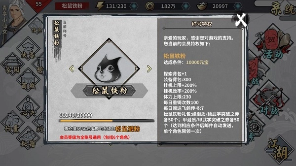 礼包类包含:每日金元宝礼包(50元宝可兑换1个珠子与100体力)、1280元宝兑换20个珠子的礼包、3280元宝兑换40个珠子的礼包,还有本次活动推出的内含松鼠徽章的礼包。