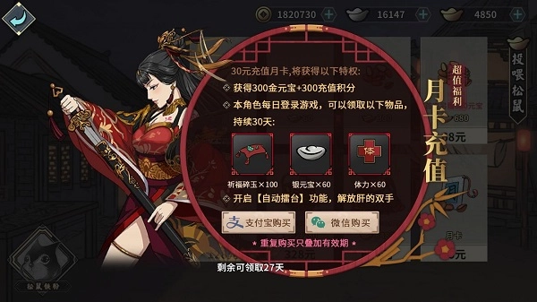 A:不管玩家是否在游戏里大量充值,月卡都是必不可少的,它是游戏中性价比最高的付费项目,没有其他任何选项能与之相比。