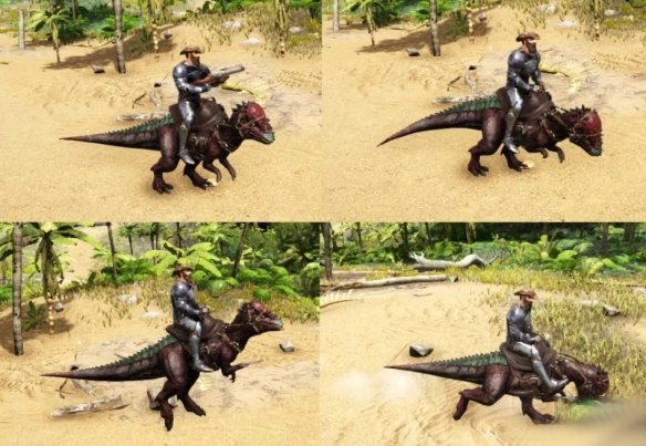 被驯服的肿头龙在血量、负重和耐力方面表现都稍显逊色,移动速度也比较迟缓,其鞍具在14级时即可解锁。骑乘肿头龙时能够使用武器,通过鼠标左键进行攻击与采集操作,此时的攻击状态和野生肿头龙一致,会附加眩晕值(数值和它自身的伤害量相近)。它可以采集少量的木头与茅草,但无法采集草丛,并且也需要玩家亲自采集浆果来进行喂食。