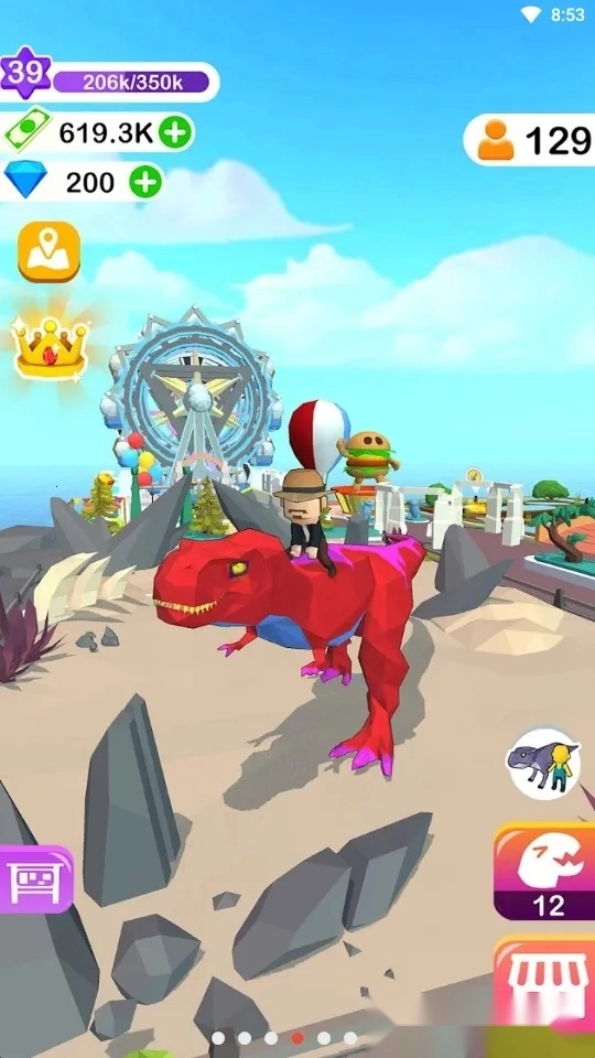 3. 多元游戏玩法:涵盖岛屿探险,可前往未知地带探索并收集资源;能够探寻史前遗迹,获取化石及特殊资源;需要关注恐龙的生存状态,制定相应的培育方案;同时还要妥善接待游客,提升收益水平等,游戏体验丰富多样。