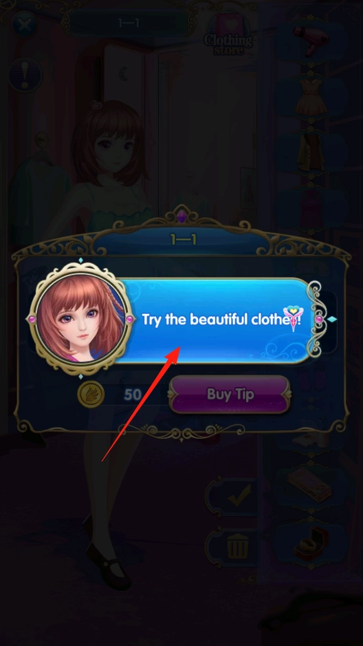 2、点击“Try the beautiful clothes”尝试换装,进入服装试穿搭配环节打造造型,提升角色外观表现,体验趣味换装互动玩法。