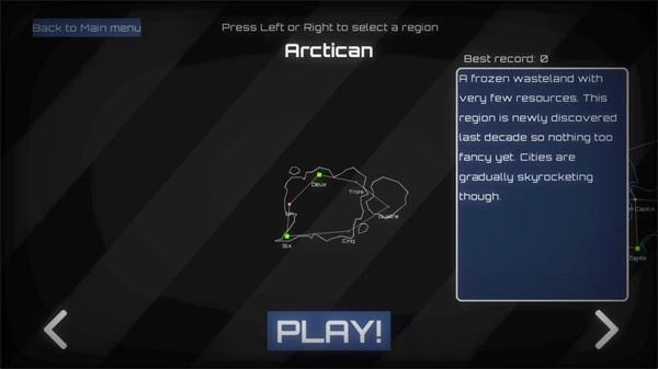 2、点击后玩家需选择不同区域开启闯关,选定区域后点击play按钮即可正式开始。