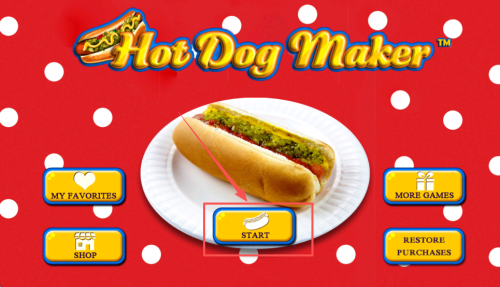 1、进入游戏:先打开游戏主界面,接着点击界面上的“START”按钮,即可进入“HotDog Maker”的初始界面。