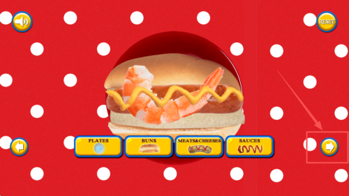 3、添加酱料:在“SAUCES”面板上连续点击酱料图标,为热狗均匀涂抹酱料。