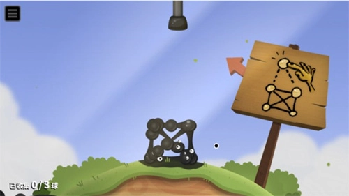 1、玩家得用粘粘球搭建一座大桥,要记得把跨度拉得大一些,而且游戏里有重力设定,粘粘球会直接往下垂落。