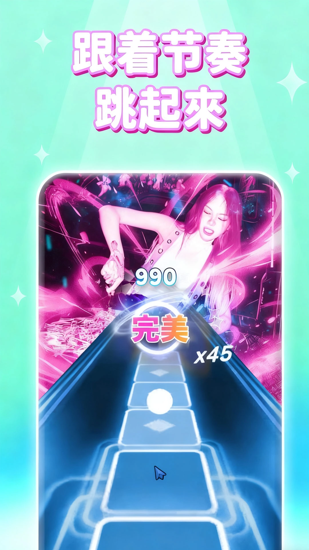 3、依据玩家跳跃时的精准度与节奏感,即时提供音乐评分。