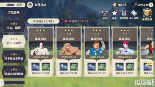 猎人启程游戏中最基础的推图玩法,主要产出角色突破材料与升级经验书,达成星级奖励后可解锁角色碎片扫荡功能,以此提升角色的觉醒星级。这一玩法收益颇为丰厚,是玩家前期的核心玩法。