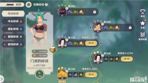 玩家能够通过不同关卡获取主战、助攻、支援这三大角色类型的潜能道具,这是游戏前期培养角色的主要途径。每个潜能特训关卡都有不同强度的划分,BOSS的强度会根据关卡难度相应调整,通过强度越高的关卡,得到的潜能星数也会越多!