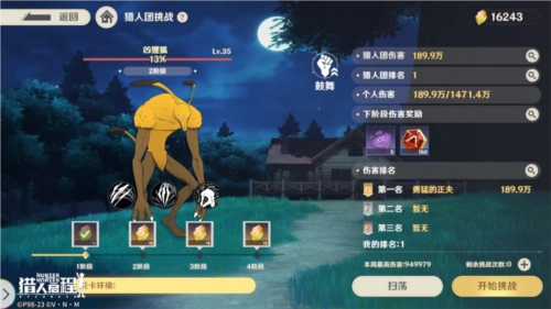 猎人团的成员们一同挑战BOSS,每次成功将其击败后,就能开启下一阶段BOSS的挑战。完成一次挑战后,后续便可直接进行扫荡操作。每周至少参与一次挑战,就能领取基础奖励;具备更强实力的猎人考生,则可以冲击更高积分,获取更丰厚的奖励。