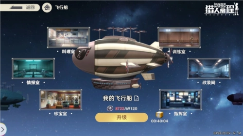 指挥室:安排角色可提升收益,从而产出更多飞船建设所需资源,这些资源将用于飞船升级。
